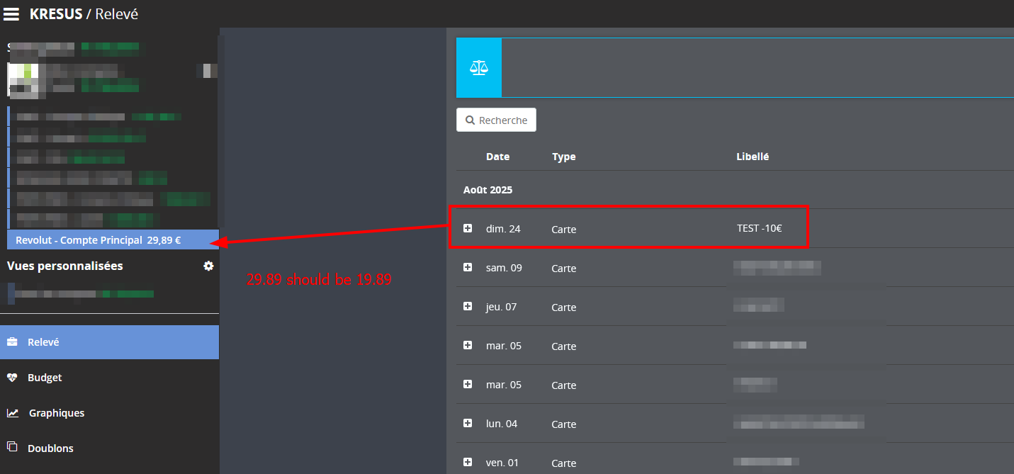 Depuis peu j’ai le total de mes comptes qui ne se met pas à jour que j’ajoute/supprime des transactions.